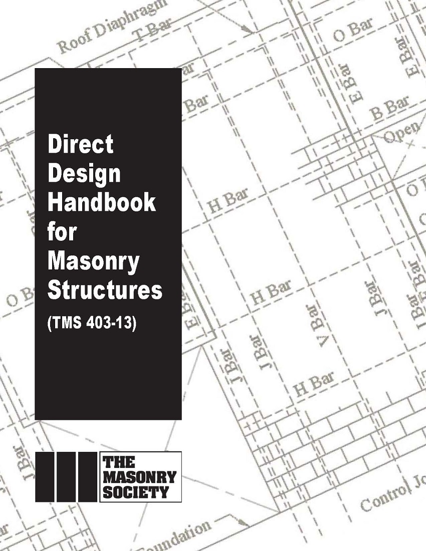 Direct Design Handbook for Masonry Structures (hereinafter referred to as the Handbook) was developed by The Masonry Society’s Design Practices Committee. This Handbook provides a direct procedure for the structural design of single-story, reinforced and unreinforced concrete masonry structures. The procedure is based on the strength design provisions of TMS 402-11/ACI 530-11/ASCE 5-11 Building Code Requirements for Masonry Structures and ASCE 7-10 Minimum Design Loads for Buildings and Other Structures. The document is applicable to both residential and commercial structures. So that users are required to do only minimal calculation, parameters are limited and design options are dictated. This Handbook applies to common structures over the vast majority of the United States including mapped ground snow loads up to 60 lb/ft2 (2.9 kPa), mapped basic wind speeds up to 200 mph (89.4 m/s), mapped seismic 0.2 second spectral response accelerations up to 3.0g, and mapped seismic 1.0 second spectral response accelerations up to 1.25g. This Handbook was developed as a consensus standard and written in mandatory language so that it may form a part of a legally adopted building code as an alternative to standards that address a much broader range of masonry construction. This Handbook was written so that architects, engineers, contractors, building officials, researchers, educators, suppliers, manufacturers and others may use the standard in their practice for various purposes.