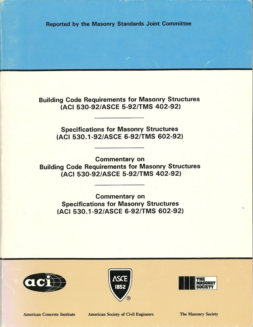 Building Code Requirements for Masonry Structures (ACI 530-92/ASCE 5-92/TMS 402-92)
