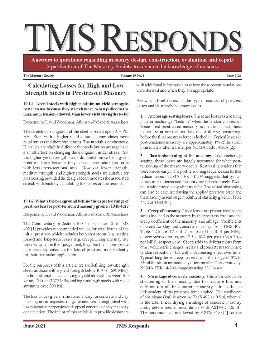 TMS Responds is a resources developed to help answer common, and sometimes, not so common questions on masonry materials, design, construction, evaluation, and repair.
